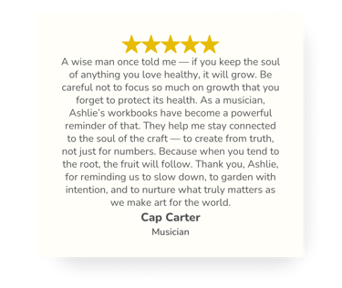 These workbooks are designed to help bands, solo artists, and managers take aligned, actionable steps, on your own time, at your own pace.